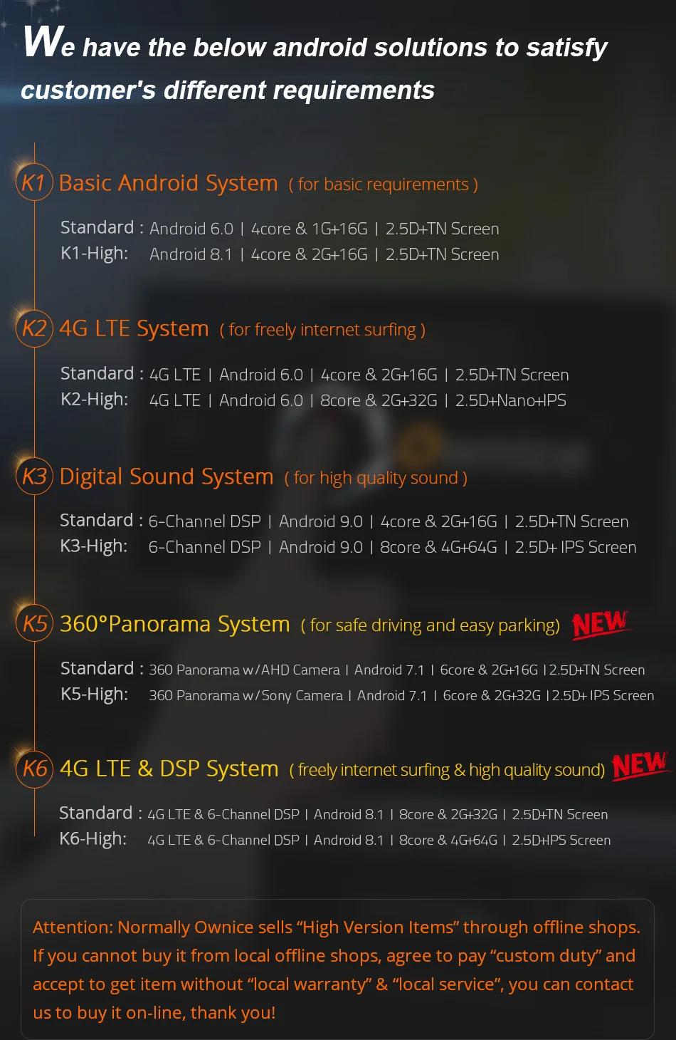 Ownice K3 & K6 series: AV-out function is optional, if your original car installed with headrest monitor, please pay extra cost US$10 and leave message that you need "AV-out".